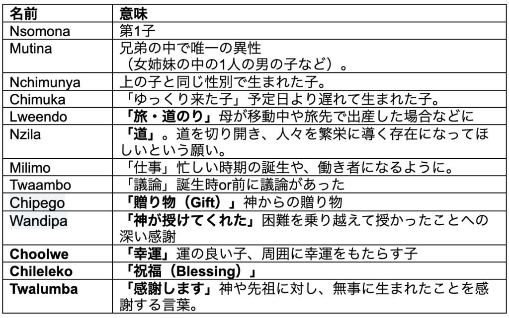 ザンビアには73の言語があり、公用語の英語とは異なる独自の響きと意味を持つ名前が大切にされています。名付けは、日本人が漢字の画数や意味を調べるのと同じように、現地の人々にとっても非常に大きな意味を持つ行事です。