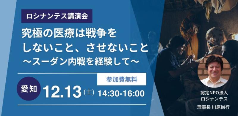 12/13【愛知】究極の医療は戦争をしないこと、させないこと〜スーダン内戦を経験して〜
